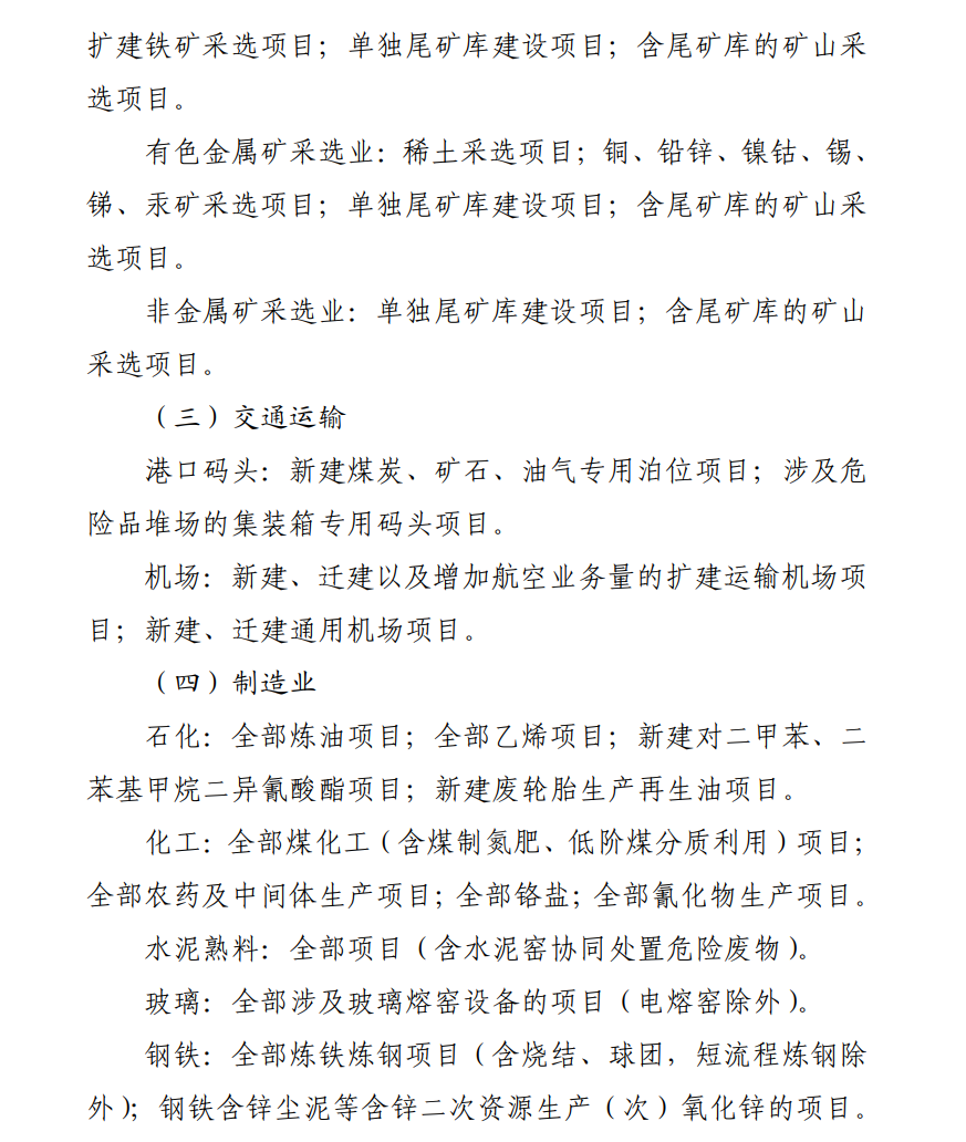石化:全部炼油项目;全部乙烯项目;新建对二甲苯、二苯基甲烷二异氰酸酯项目;新建废轮胎生产再生油项目。