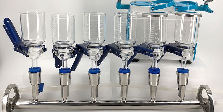 多联过滤器是实验室中的容积过滤装置,与玻璃材质砂芯过滤装置相对比,多联过滤器更高效,更快捷,仅需一台泵就可同时过滤多个样品,提高了实验室工作效率。