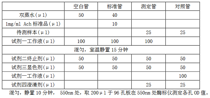 本试剂盒可测各种动物组织等样本中 Ach 含量.