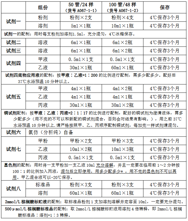 试剂组成与配制: