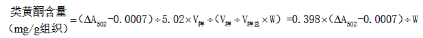 在碱性亚硝酸盐溶液中,类黄酮与铝离子形成在502nm处有特征吸收峰的红色络合物,测定样品提取液在502nm处的吸光值,即可计算样品类黄酮含量。