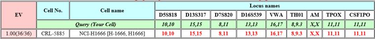 本细胞株通过STR (short tandem repeats)鉴定,具体结果如下: