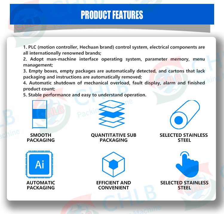 4. Automatic shutdown of mechanical overload, fault display, alarm and finished product count;