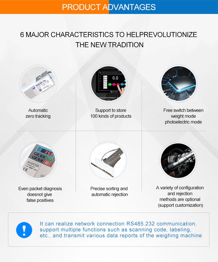 It is an automatic equipment that provides weight detection for food, pharmaceutical, electronics, beverages, health products, daily chemicals, light industry, agricultural and sideline products and other industries.