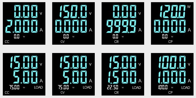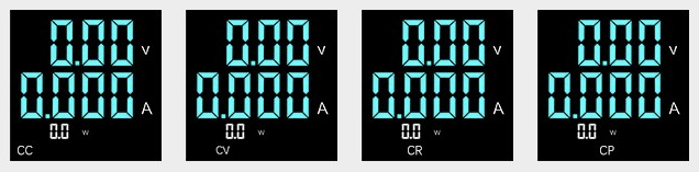 4、选择所需模式按下编码器,此时电压/电流/电阻/功率值末位闪烁,旋转编码器可改变按下编码器可进位改变,无动作5S后保存到当前所需值,点击LOAD可直接拉载。如下图: