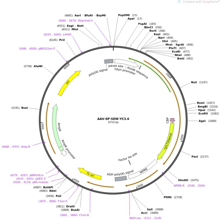 质粒名称:AAV-6P-SEW-YC3.6