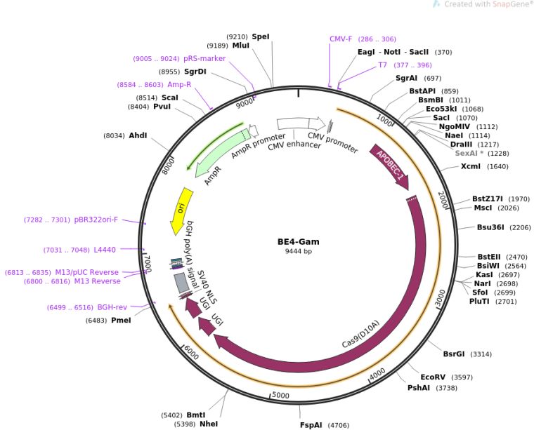 质粒备注:Expresses BE4-Gam in mammalian cells