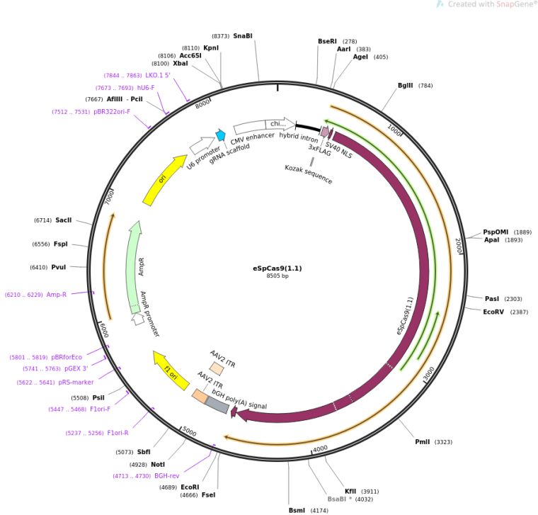 质粒备注:Expresses high specificity SpCas9. Px330-like plasmid.