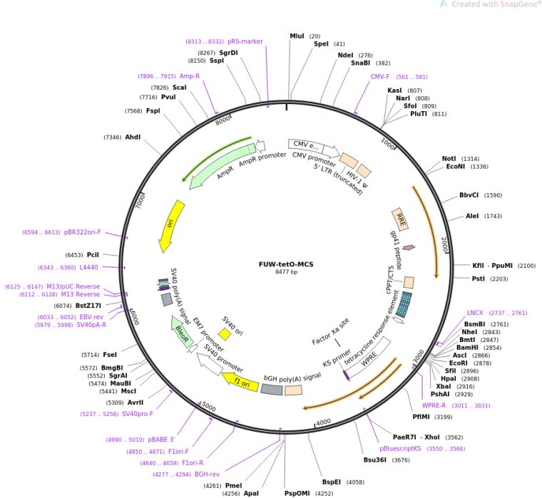 质粒名称:FUW-tetO-MCS