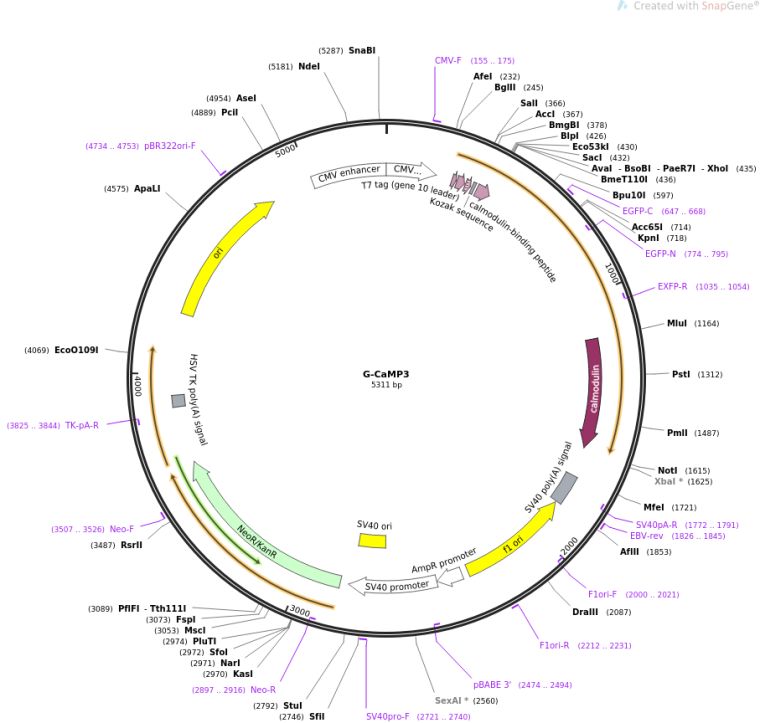 质粒备注:a single-wavelength GCaMP2-based genetically encoded calcium indicator