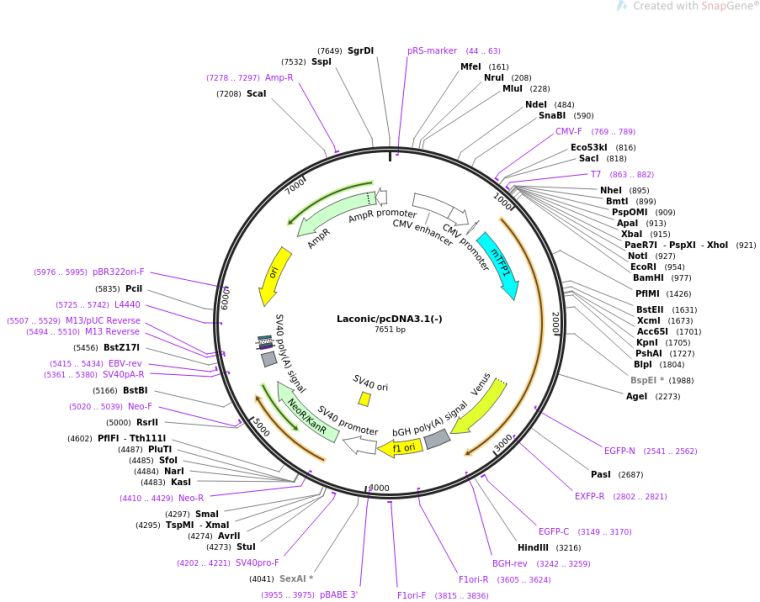 插入基因:Laconic (LACtate Optical Nano Indicator from CECs)