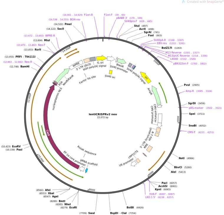 质粒名称:lentiCRISPRv2 neo