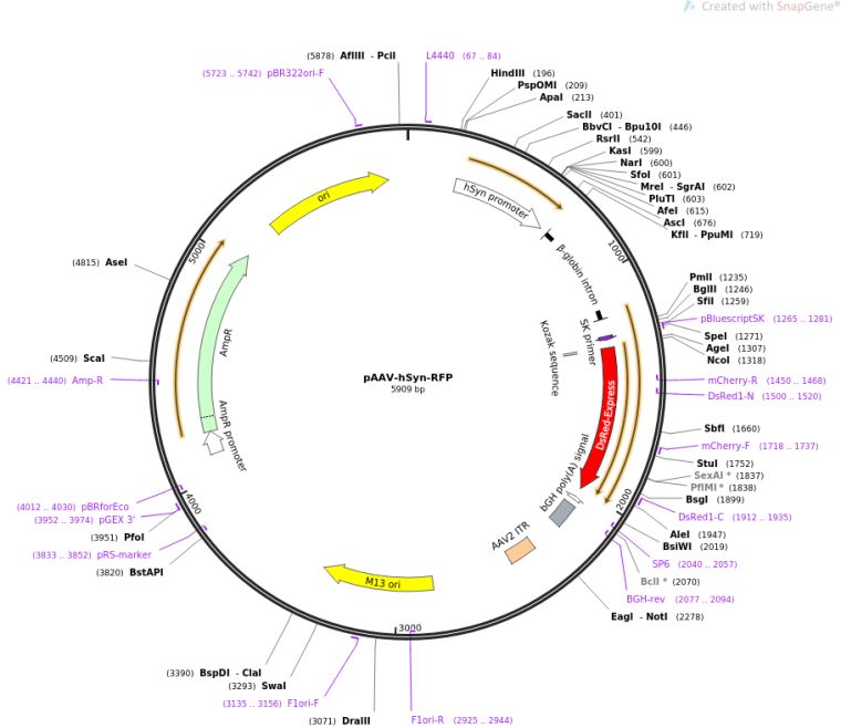 插入基因:human Synapsin I promoter driving DsRedExpress