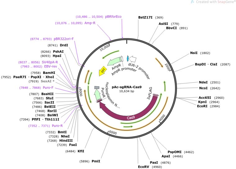质粒备注:Expresses sgRNA and Cas9-Puro in Drosophila S2 cells