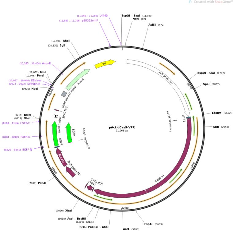 质粒名称:pAct:dCas9-VPR