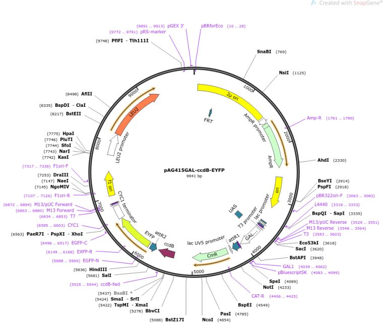 质粒名称:pAG415GAL-ccdB-EYFP