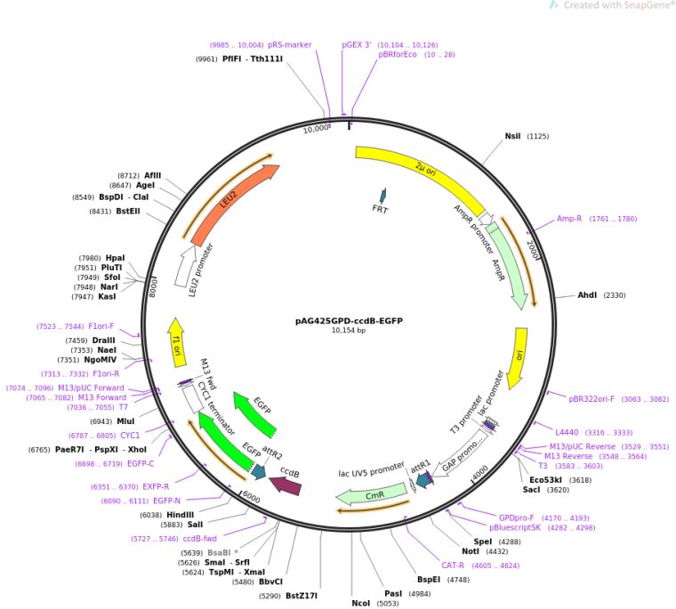 原核抗性:Chloramphenicol and Ampicillin, 25 & 100 μg/mL