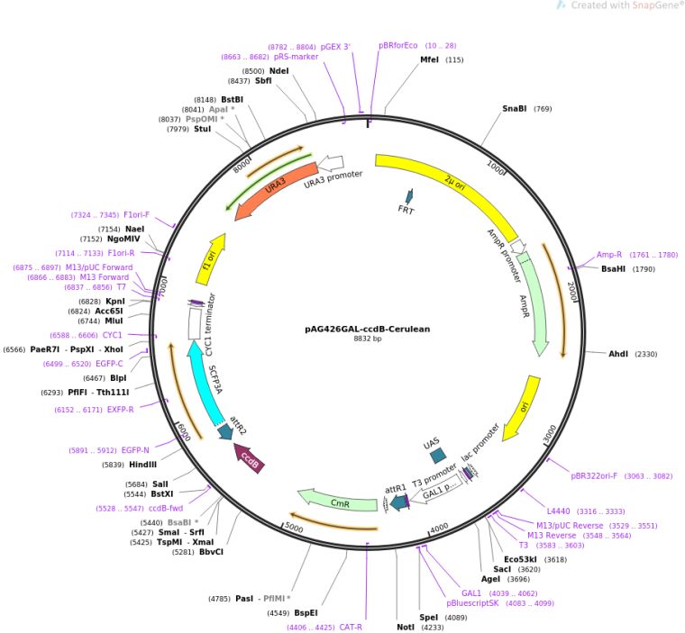 质粒名称:pAG426GAL-ccdB-Cerulean