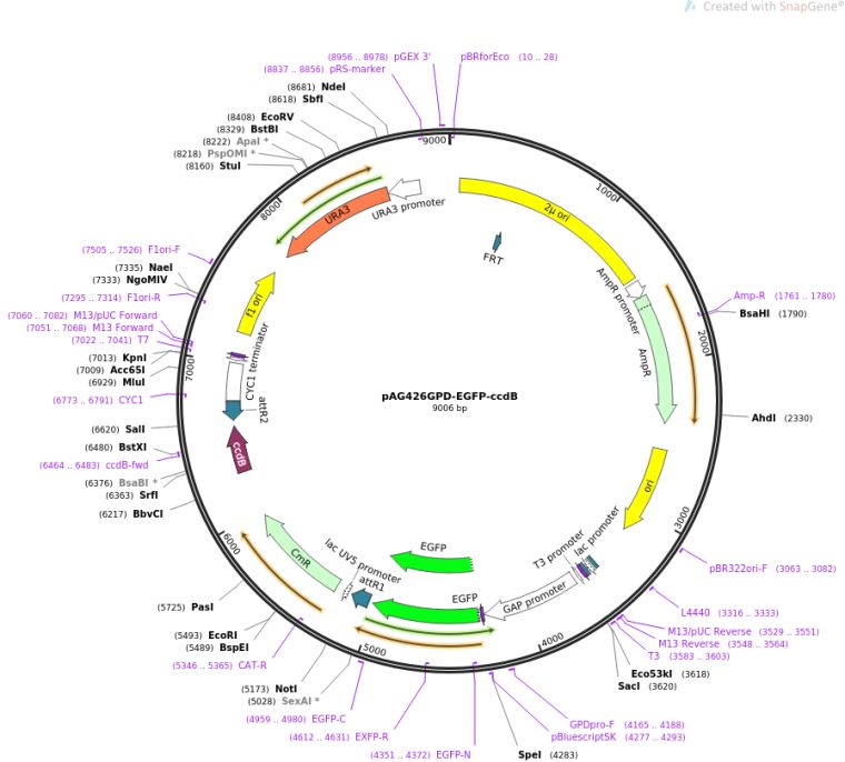 原核抗性:Chloramphenicol and Ampicillin, 25 & 100 μg/mL