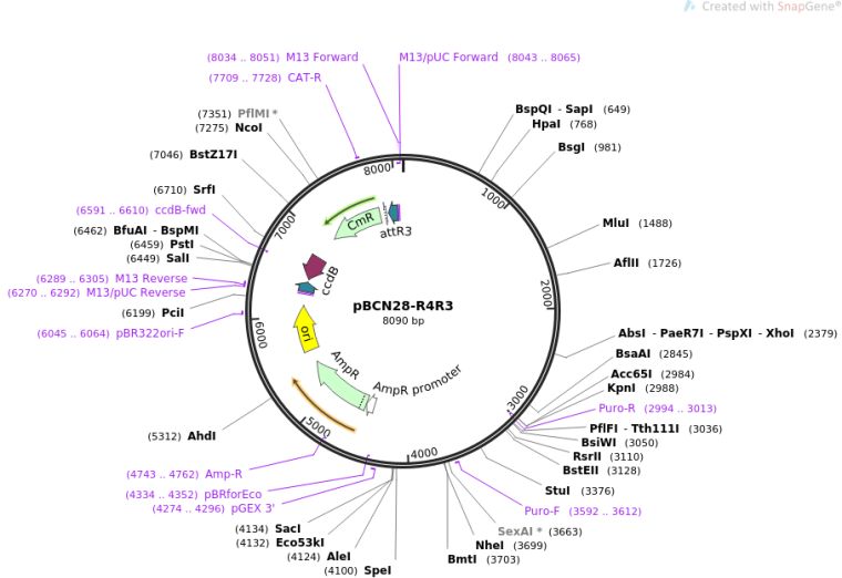 原核抗性:Chloramphenicol and Ampicillin, 25 & 100 μg/mL