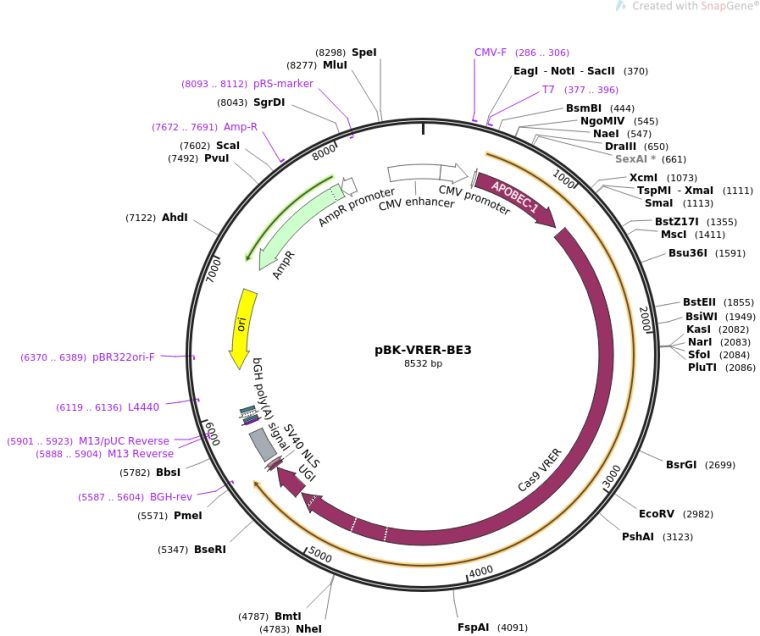 质粒名称:pBK-VRER-BE3