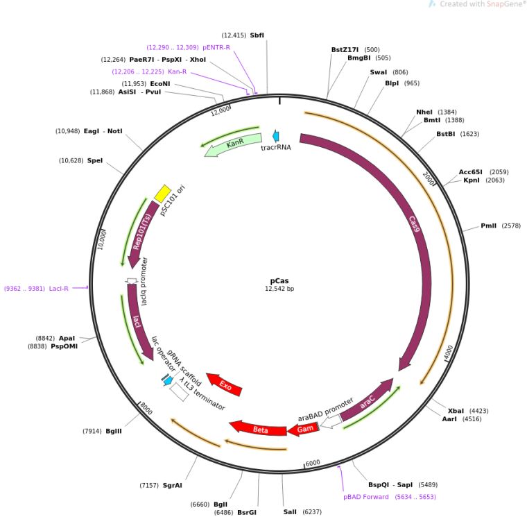 载体类型:Bacterial Expression, CRISPR ; Lambda Red recombinase