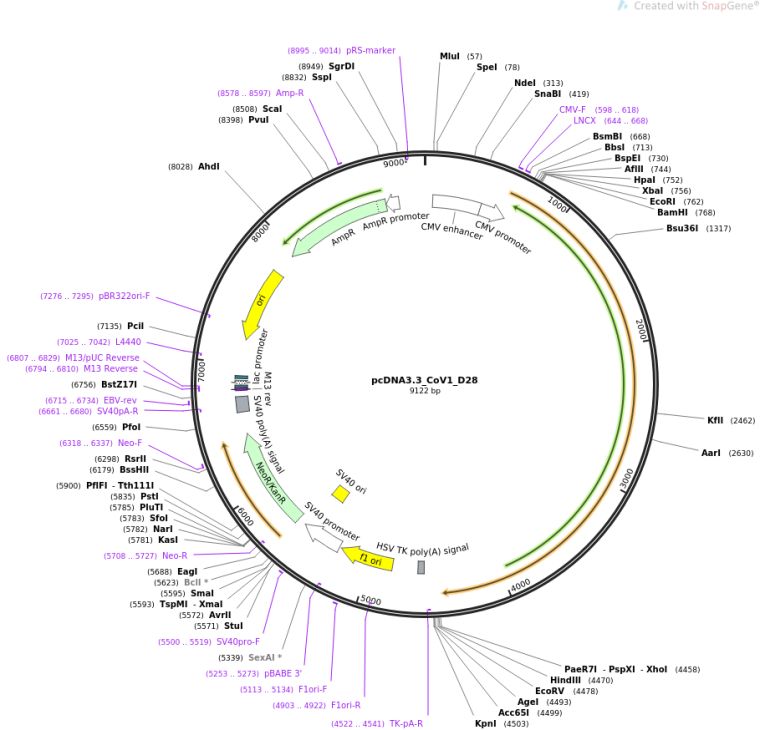 质粒名称:pcDNA3.3_CoV1_D28