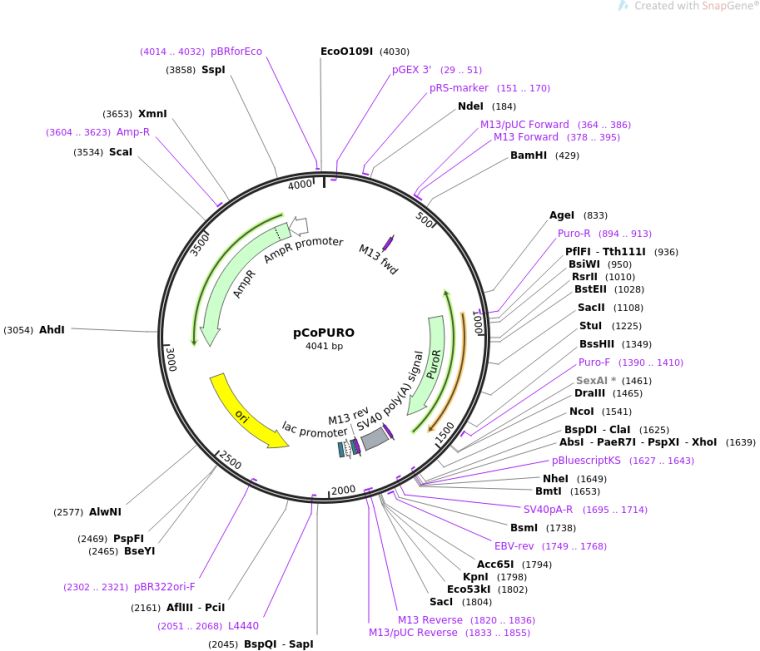 质粒名称:pCoPURO