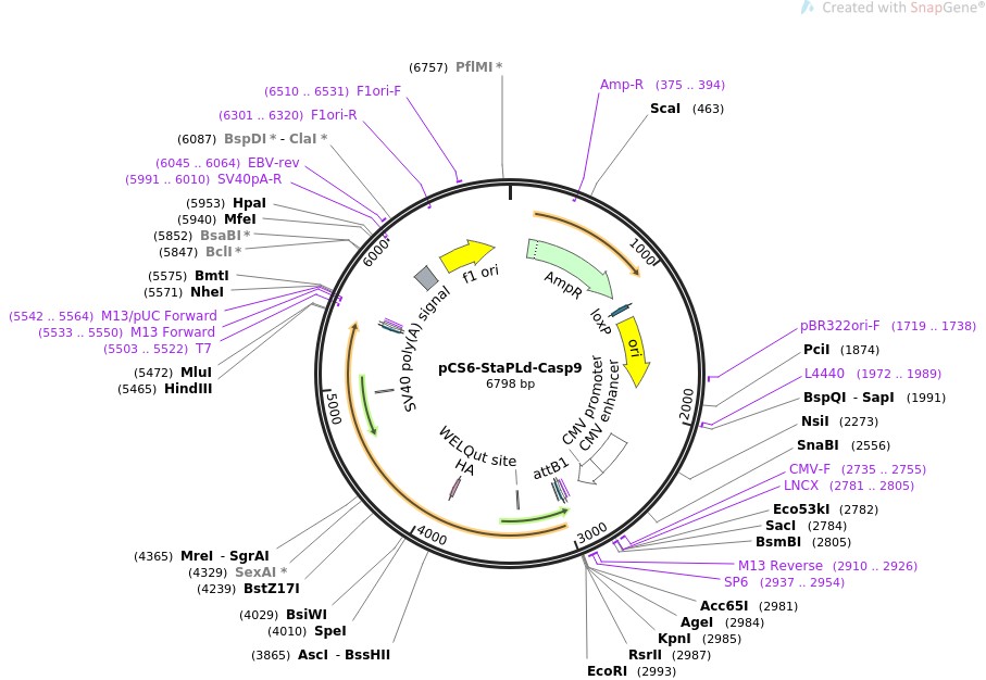 质粒名称:pCS6-StaPLd-Casp9