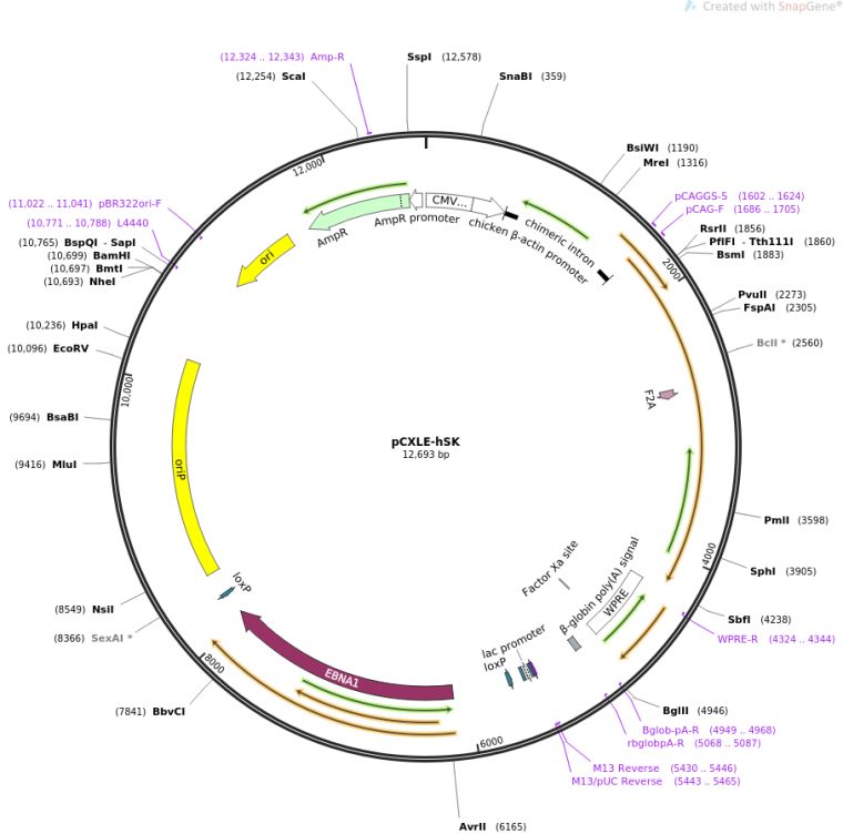 质粒备注:Integration-free (episomal) expression of human SOX2 and KLF4
