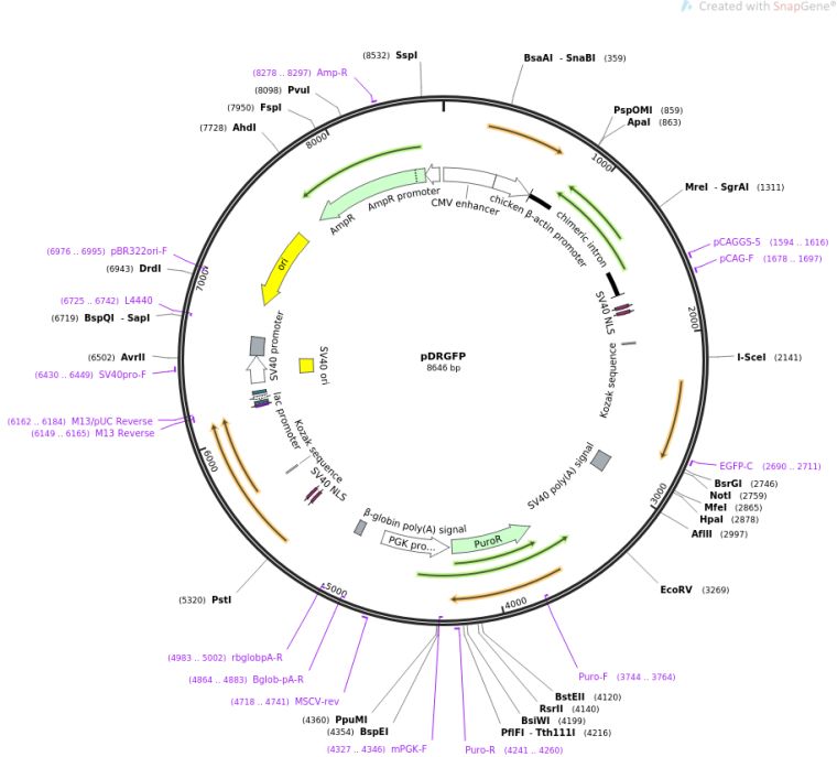 质粒备注:In vivo homologous recombination substrate composed of two differentially mutated GFP genes oriented as direct repeats and separated by a drug selection marker