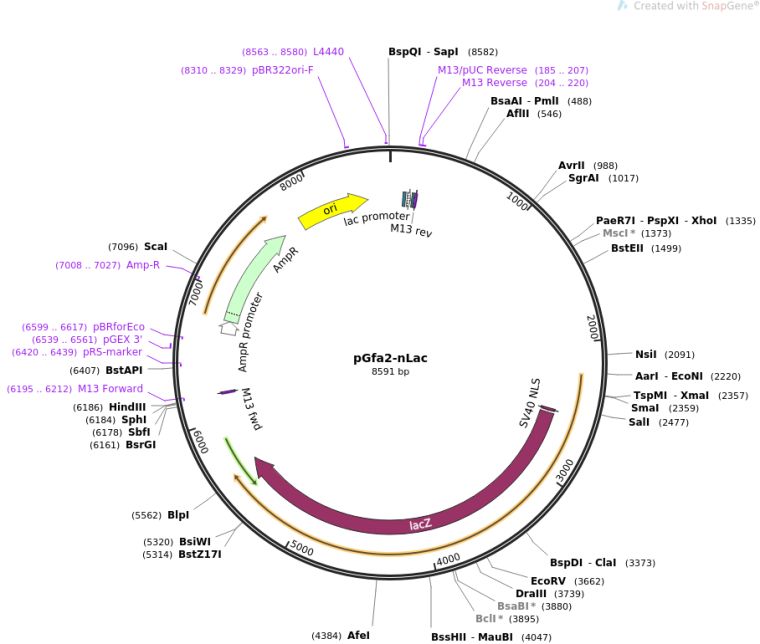 质粒备注:Expression of LacZ driven by the human Gfa2 promoter. LacZ can also be replaced with the gene of interest for targeting transgene expression to astrocytes in mice.
