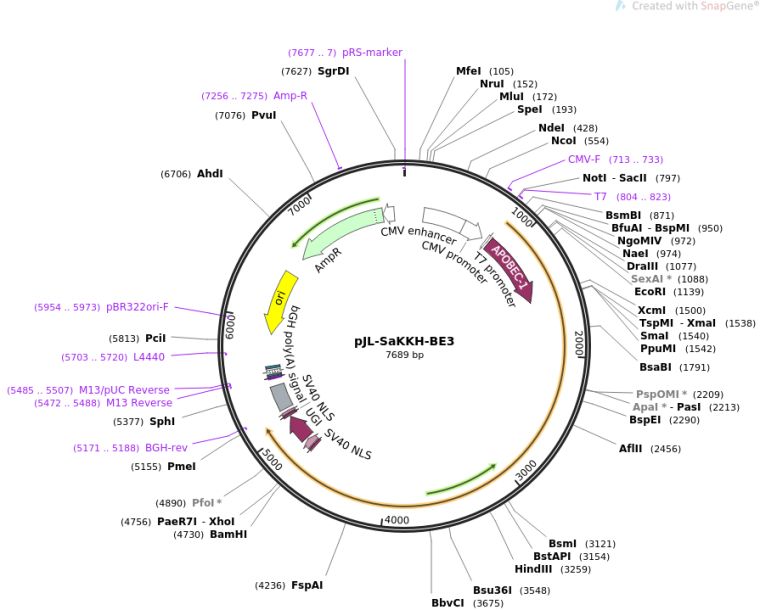 质粒备注:Expresses SaKKH-BE3 in mammalian cells [Edit]