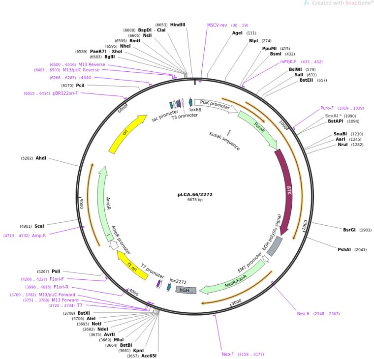 插入基因:Lox66-pU(delta)TK-EM7Neo-Lox2272