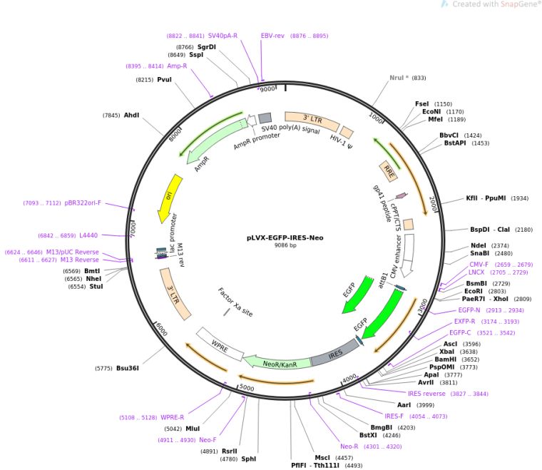 质粒备注:mammalian expression of EGFP with neomycin selection
