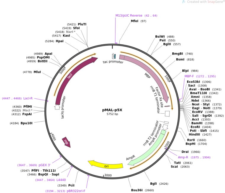 质粒备注:(Empty Backbone) Expresses proteins in the periplasm as fusions to a high-binding mutant (A313V) maltose-binding protein