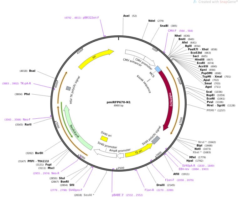 质粒备注:Monomeric near-infrared fluorescent protein miRFP670 in mammalian plasmid