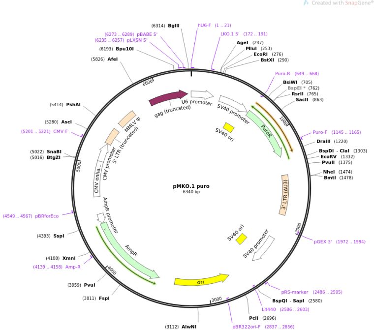 质粒名称:pMKO.1 puro