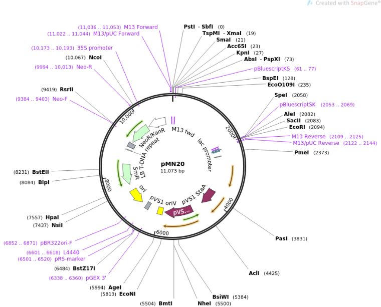 质粒名称:pMN20