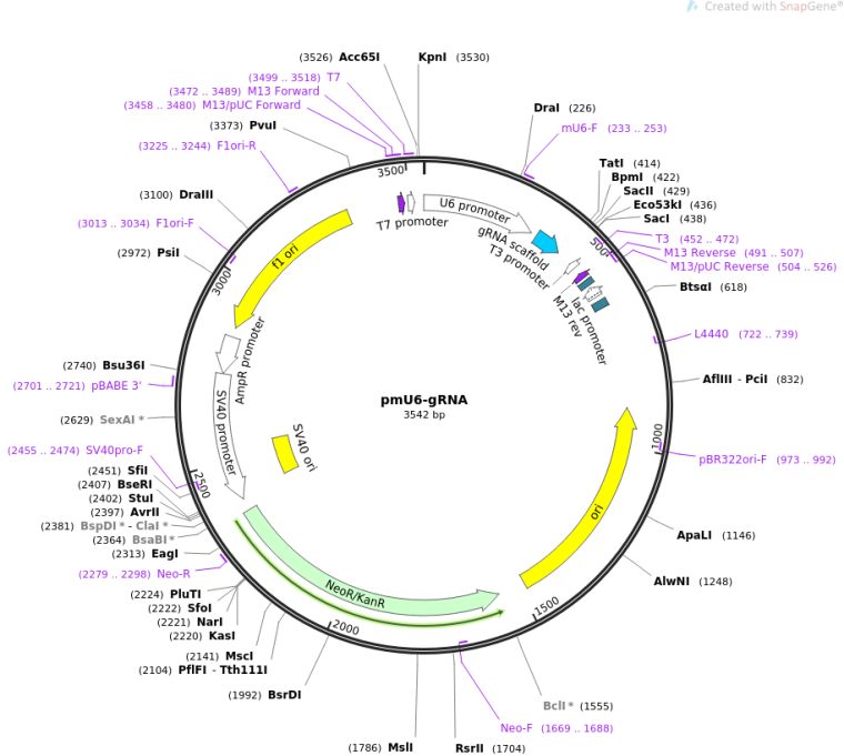 质粒名称:pmU6-gRNA