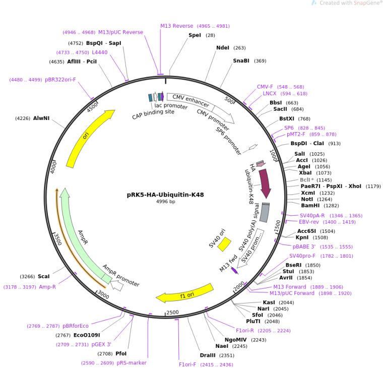 质粒名称:pRK5-HA-Ubiquitin-K48