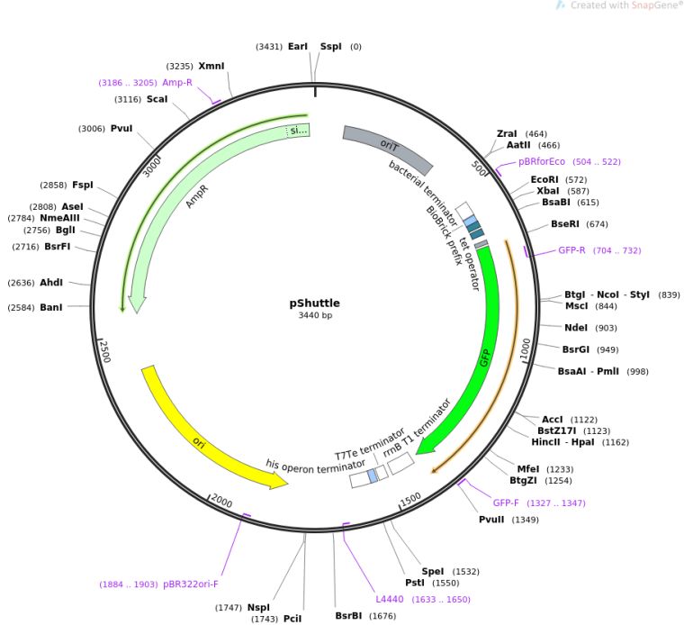 质粒备注:Mobilizible plasmid with EGFP. OriT from the F plasmid.