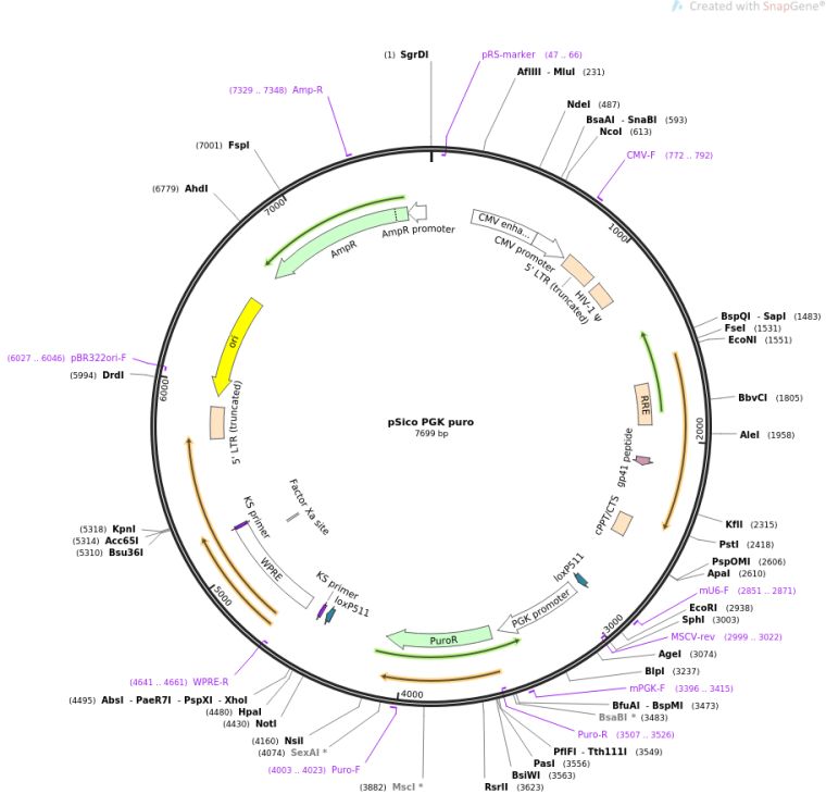 质粒名称:pSico PGK puro