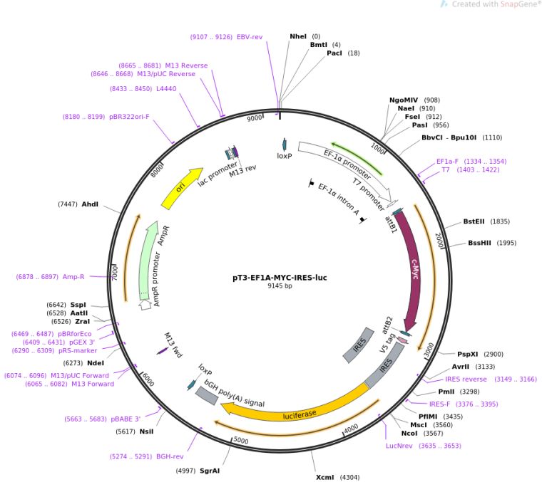 质粒名称:pT3-EF1A-MYC-IRES-luc