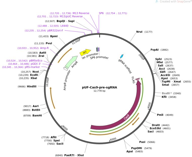 质粒备注:(Empty Backbone) Cas9 and gRNA expression plasmid for P. falciparum with yDHODH selectable marker.
