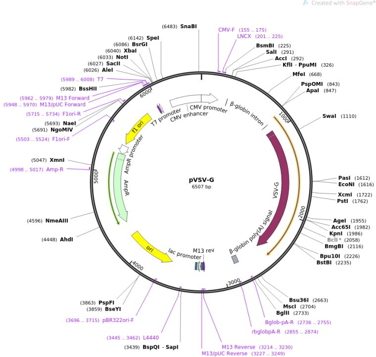 质粒备注:Expresses VSV-G envelop protein for pseudotyping NanoMEDIC particle.