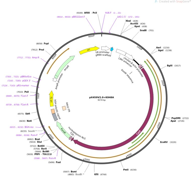 质粒名称:pX459V2.0+K848A