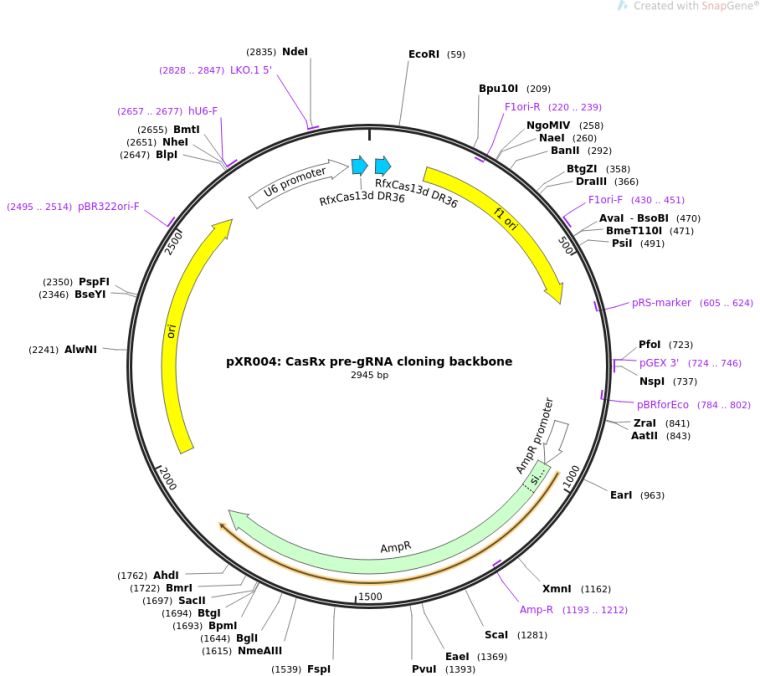 质粒名称:pXR004: CasRx pre-gRNA cloning backbone