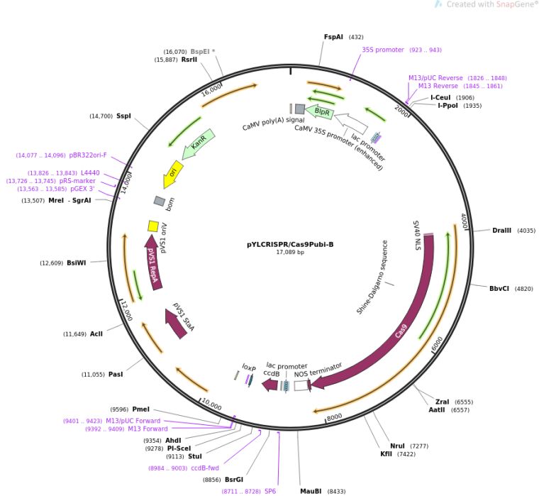 质粒名称:pYLCRISPR/Cas9Pubi-B