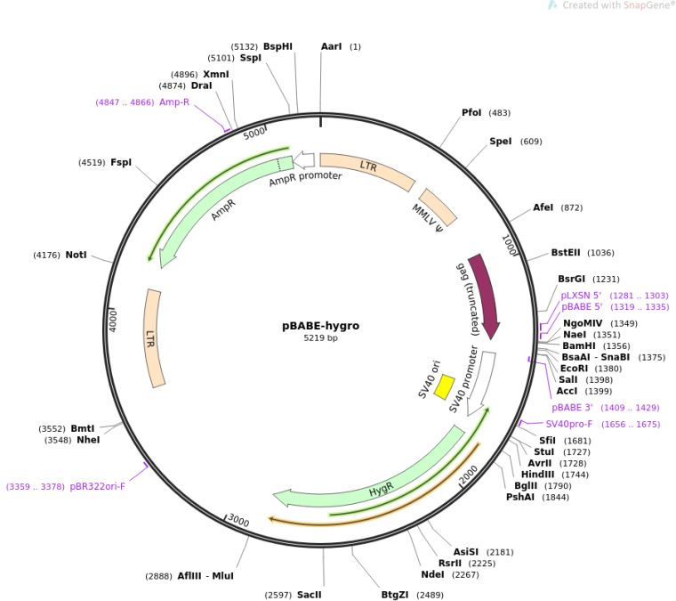 质粒备注:(Empty Backbone) Retroviral vector for cloning and expressing your gene of interest. Hygromycin selection.